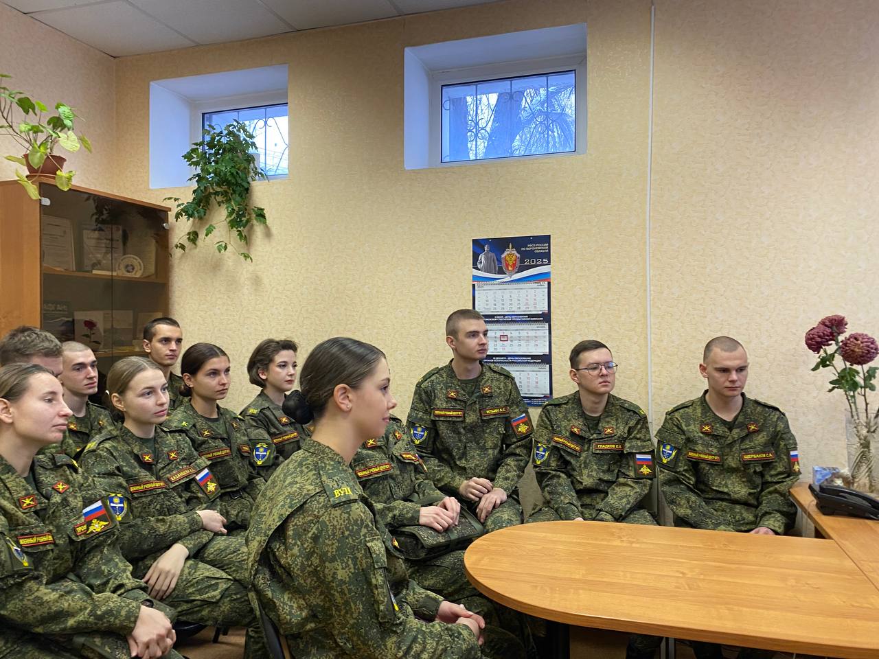В ходе состоявшегося диалогам курсанты также узнали о целях, задачах, практической деятельности уникальной организации «Первый взвод», которая реализует программу начальной военной подготовки. Занятия с призывниками проводят военнослужащие, обладающие практическим боевым опытом, полученным в ходе различных вооруженных конфликтов, включая Афганистан, Чечню и специальную военную операцию.
